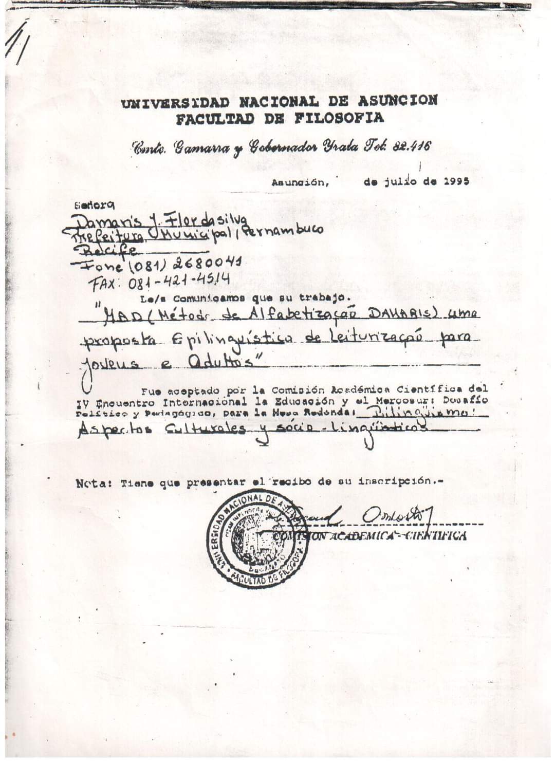 Hoje, Damaris vive em Balneário Barra do Sul (SC) e continua atuando com pesquisa, escrita e palestras. Orgulha-se da trajetória construída e da família que formou — filhos, netos e bisnetas que são sua maior inspiração. Sua vida é marcada por fé, ciência e amor transformador.